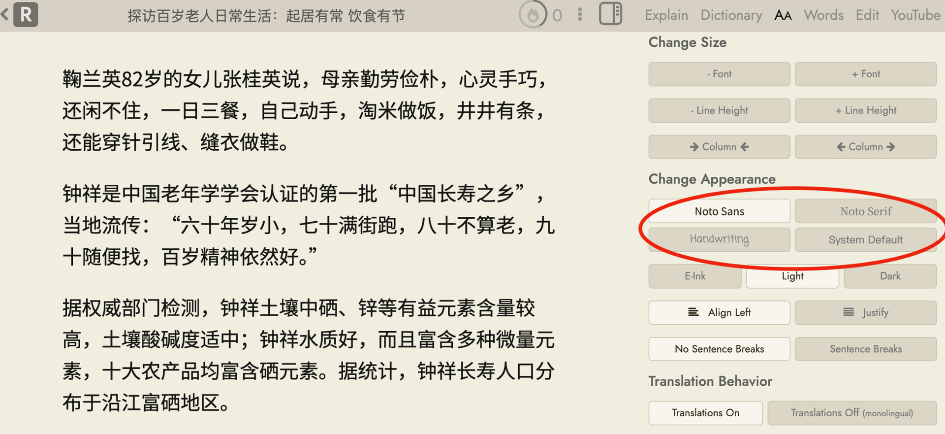 I’ve tried changing the font in ReadLang’s settings, but now all four font options display the same font in Chinese or Japanese texts. Also I tried to change font in the phone settings but this doesn’t affect on ReadLang’s fonts at all.