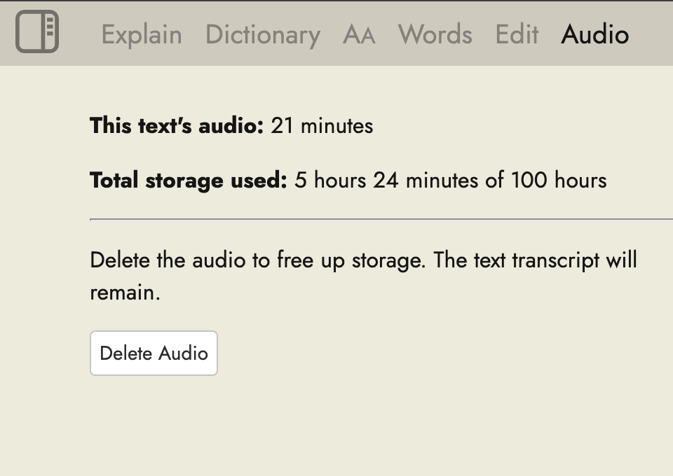 Sorry to revive an old thread, but if I delete the audio file, does that also delete the transcript? Is there a way to keep the transcript even if I delete the audio file eventually to make room? Thanks. I’m loving this feature btw, it really helps to get more out of podcasts.