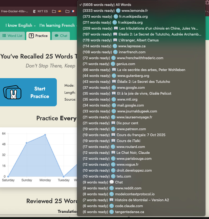 However, like you, I want to navigate to a specific source as quickly as possibly. Right now I’m only focused on one book, and need to select it every time because the default is “all words.” But there might be people who rotate their practice across different sources each time.